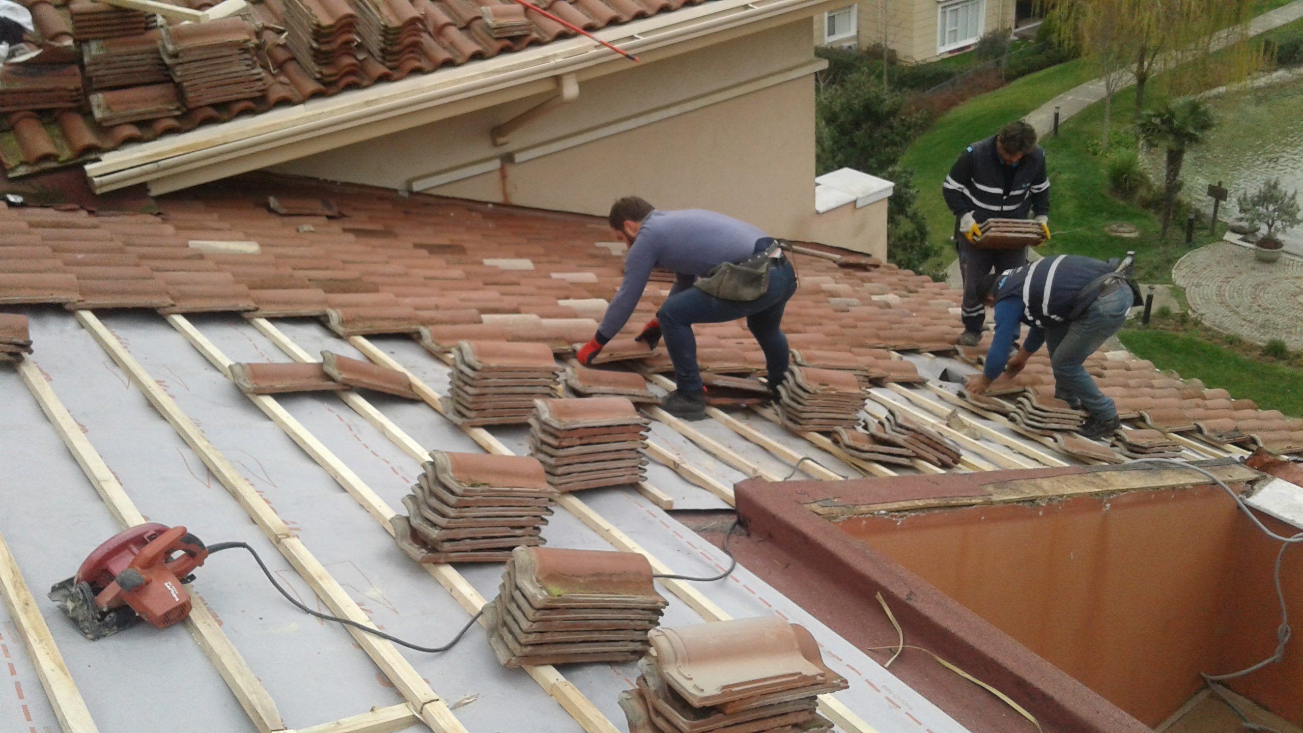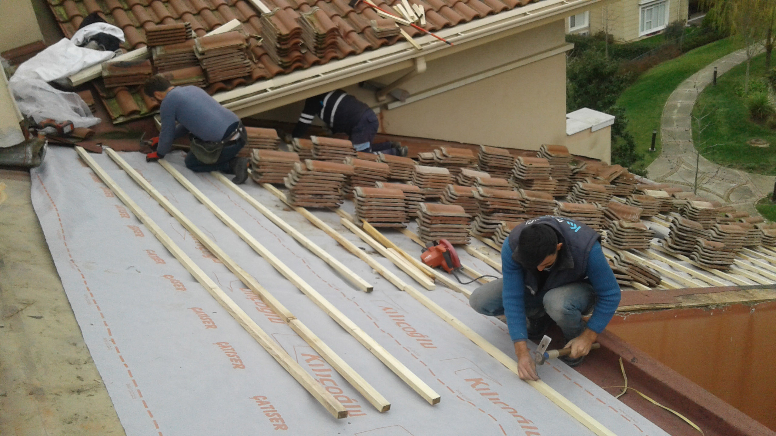 Kiremit Çatı Kaplamalarının Tadilatı : Kiremitlerin döşenebilmesi için çatıda merteklerin üzerine kiremit altı tahtası veya Osb çakılması ve bu kaplamaların üzerine de nitelikli bir su geçirmez, buhar geçirgen örtü serilmesi gerekir. Bu örtü kiremitlerden sızabilecek suyun aşağıya geçmesini engeller, içinde oluşan buharı dışarı atmasını sağlayarak çatının hava almasını sağlar. Çatı kiremitleri tek tek kontrol edilmeli kırılan kiremitler yenisi ile değiştirilmelidir.