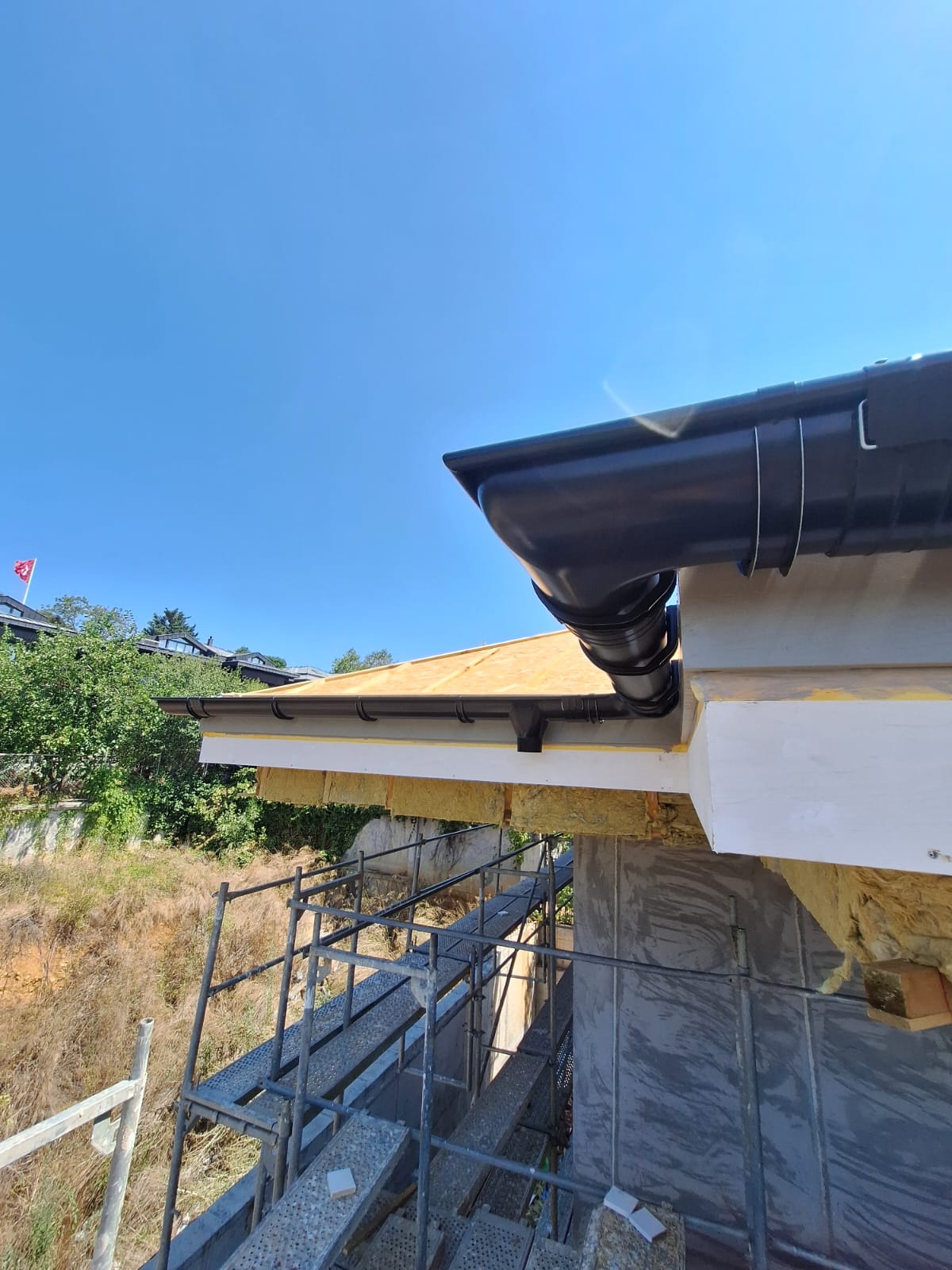 Çift kat polyester 450 g. /m² uzun ömürlü su yalıtımı sağlar. Min. 30 cm genişlikte çatıda ki yağmur suyunu toplayarak iniş borularından tahliye ederek çatıda kaliteli sızdırmaz bir yalıtım sağlar.